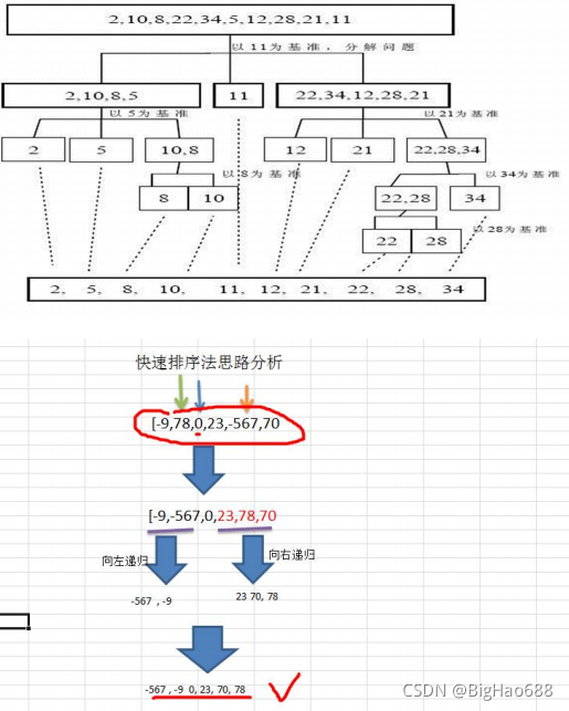 二、快速排序:(对冒泡排序的一种改进)(平均时间复杂度:O(nlogn))