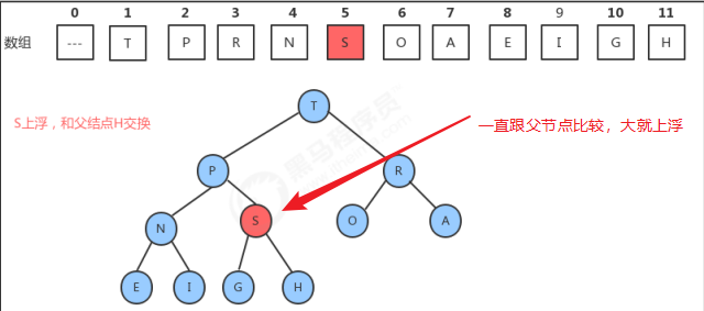 堆的构造,最直观的想法就是另外再创建一个和新数组数组,然后从左往右遍历原数组,每得到一个元素后,添加到新数组中,并通过上浮,对堆进行调整,最后新的数组就是一个堆。