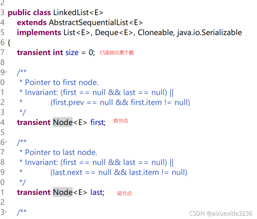 ?链表: 保存的都是节点,每个节点都有三个属性,分别是:?添加的数据,上一个节点引用,下一个节点引用