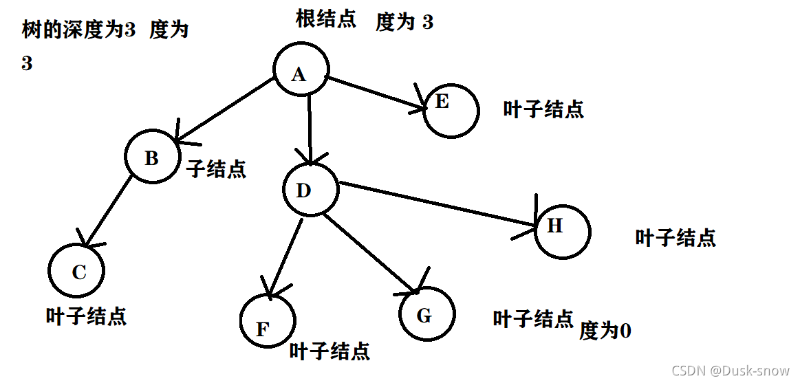 - 树的度: 一棵树中,最大的结点的度称为树的度;