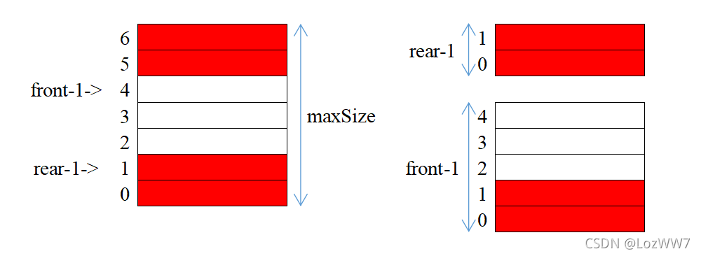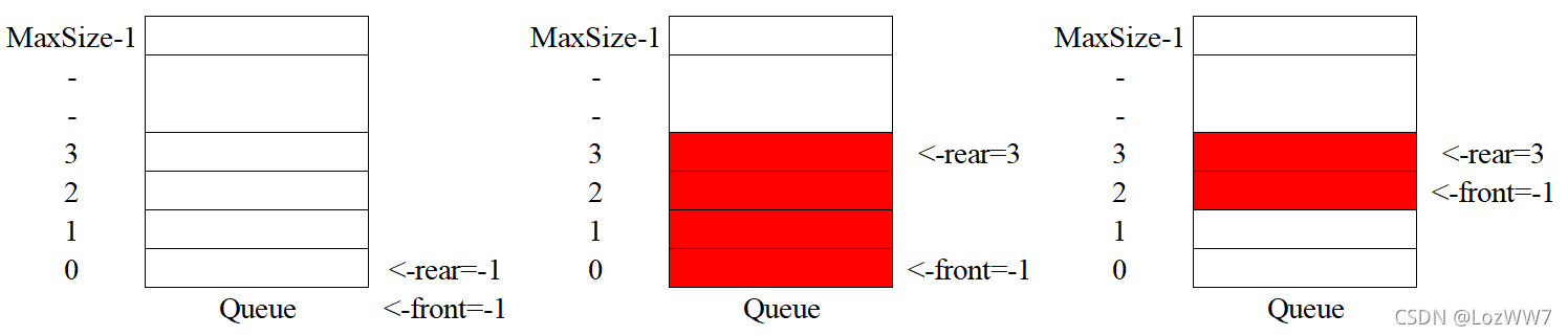 rear = -1;//指向队列尾,指向队列尾的数据(即队列最后一个数据)
