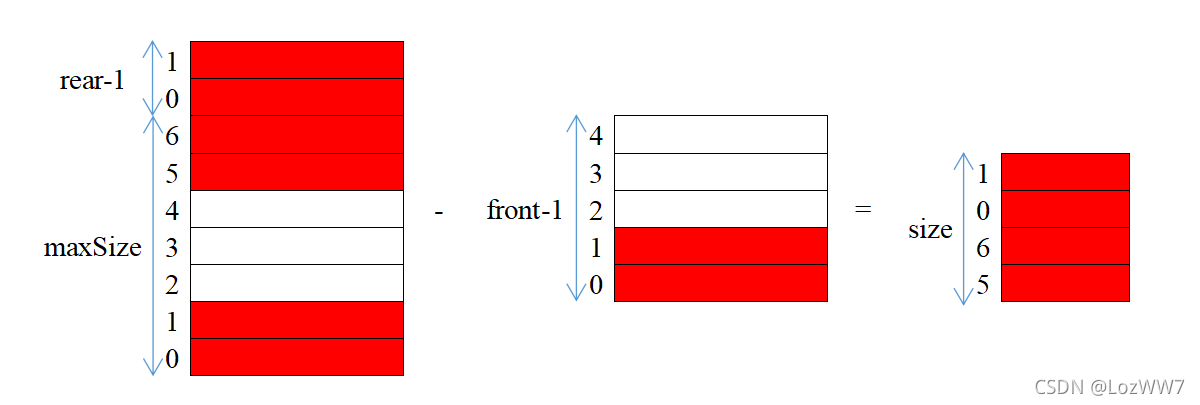 size = rear -1 + maxSize - (front - 1) 即 rear - front + maxSize