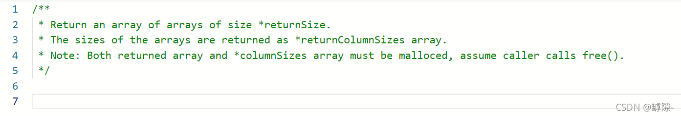 ③根据题目要求为记录行数的二维数组returnColumnSizes开辟空间