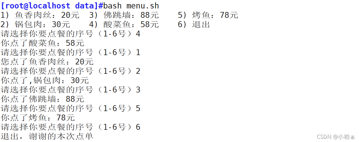 echo "退出,谢谢的本次点单"