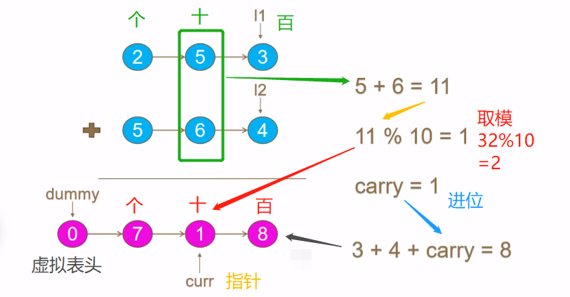来源:力扣(LeetCode) 链接:https://leetcode-cn.com/problems/add-two-numbers 代码:LeetCode题解-老汤,里面的注释是我自己看视频写的