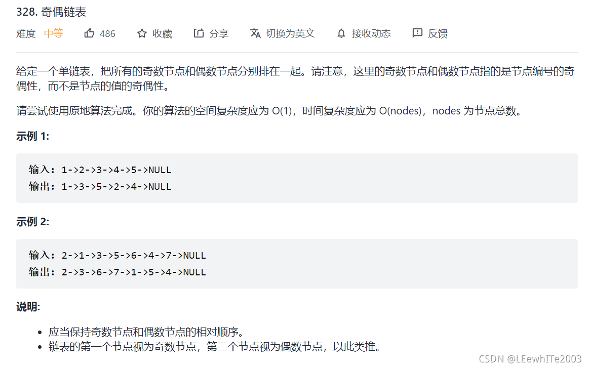 odd->next = even->next; "这里用even->next和odd->next->next好像没什么不同"