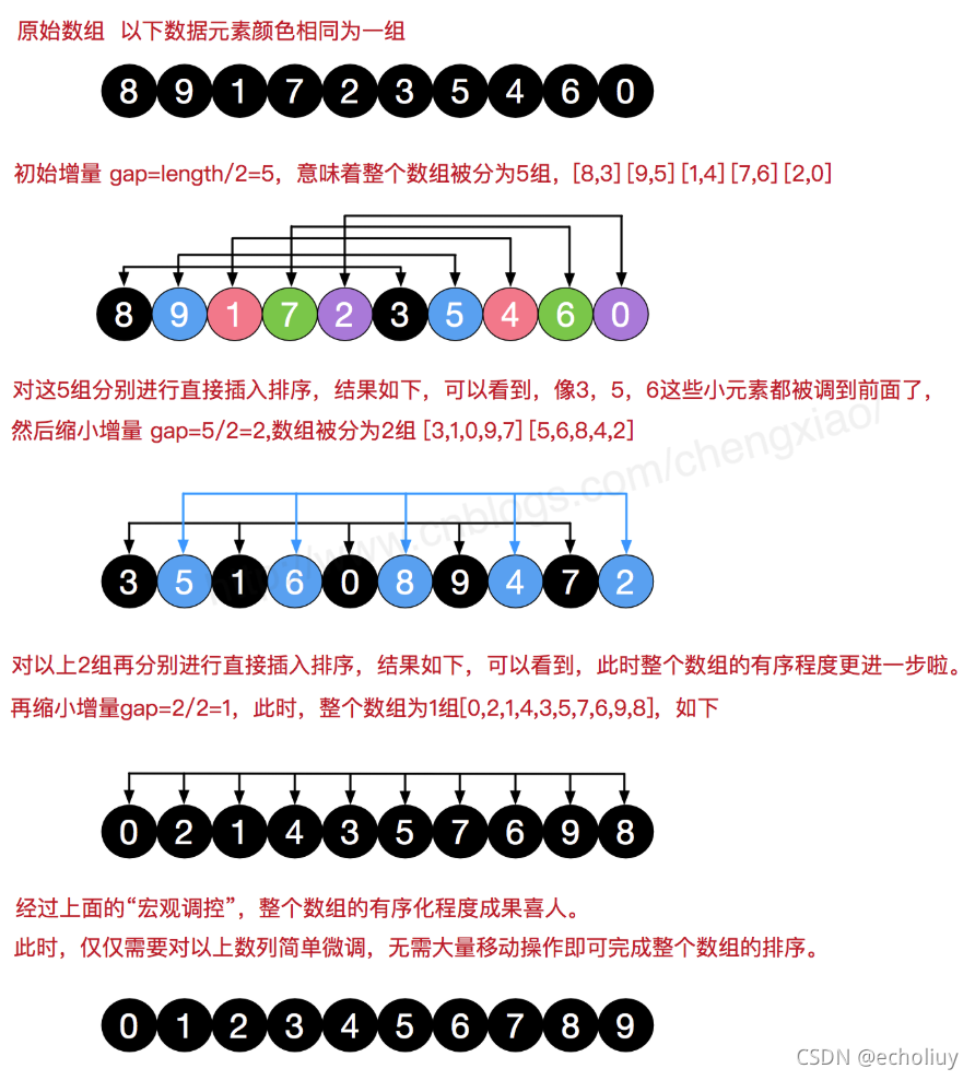 希尔排序是把记录按下表的一定增量分组,对每组使用直接插入排序算法排序;随着增量逐渐减少,每组包含的关键词越来越多,当增量减至1时,整个文件恰被分成一组,算法便终止。