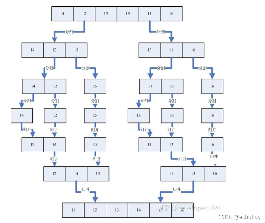 - 步骤3:将两个排序好的子序列合并成一个最终的排序序列。