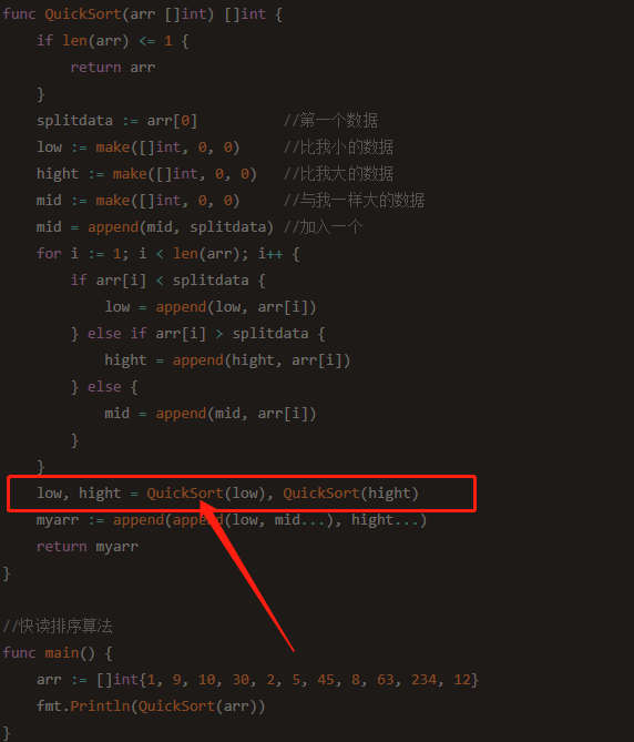 func QuickSort(arr []int) []int {