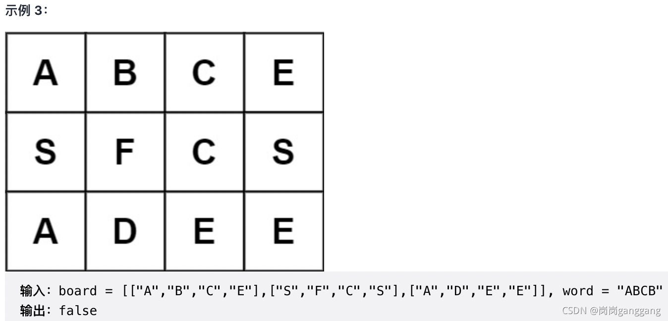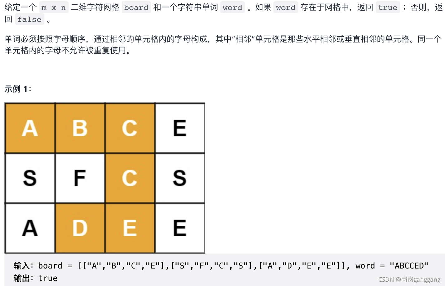 4.对输入board每个位置(i,j)进行判断,如果board[i][j]=word[0],则对该位置调用dfs,注意此时idx从1开始而不是从0,因为进入dfs就说明第一个字符已经匹配成功了。