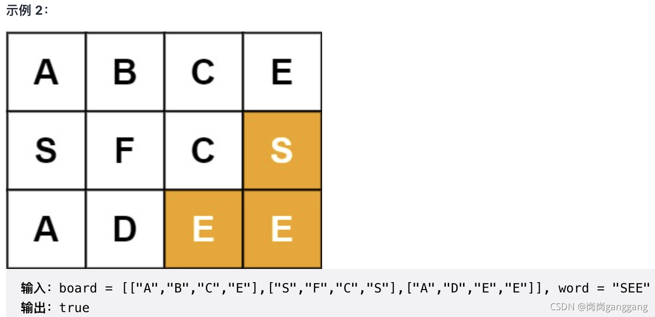 1.定义函数dfs,输入为一个坐标(posx,posy),需要匹配的字符串s和当前已经匹配到的下标idx,如果idx=len(s)说明已经完成了匹配,返回true,如果(posx,posy)超出界限或者与下一个需要匹配的s中的字符不同则返回,否则对当前位置的上下左右四个相邻位置调用dfs。