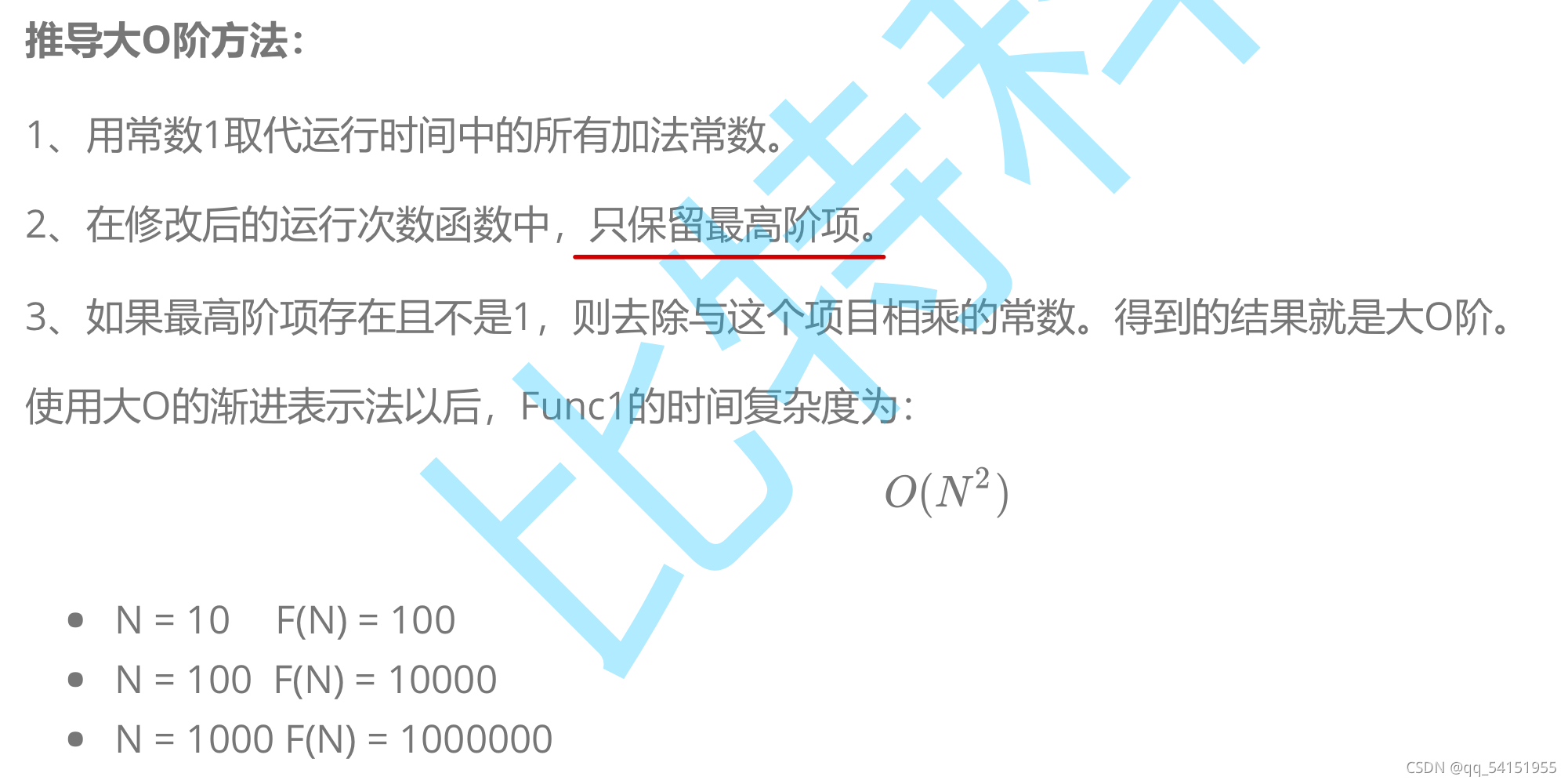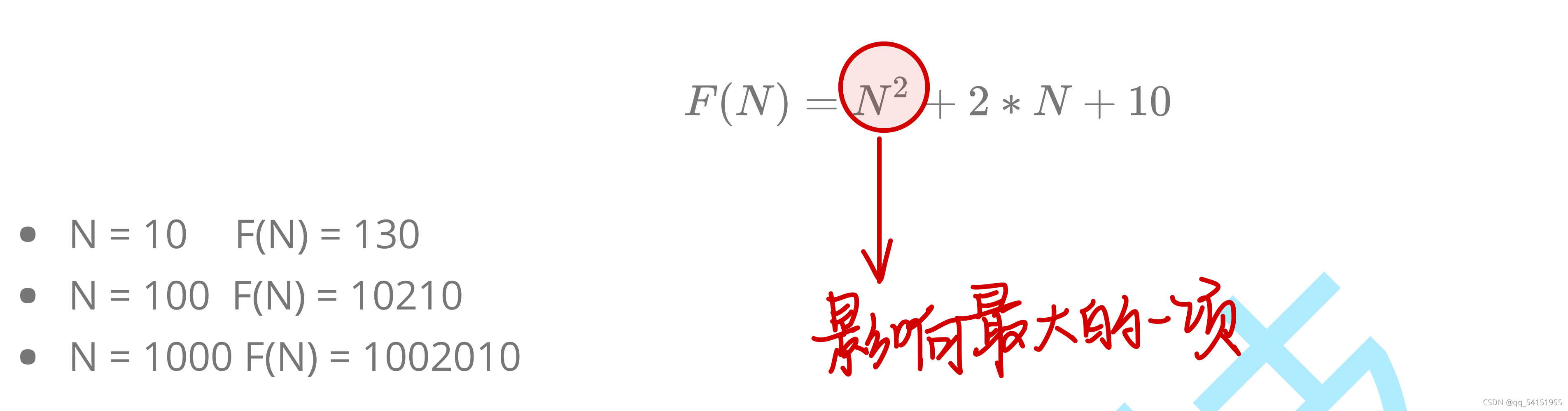 通过上面我们会发现大O的渐进表示法去掉了那些对结果影响不大的项,简洁明了的表示出了执行次数。