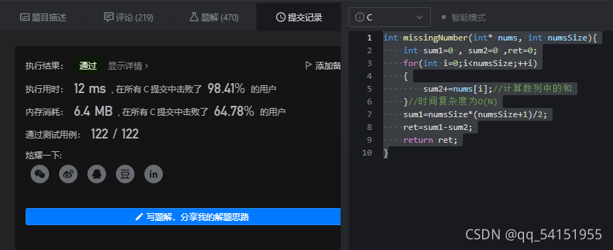 sum1=numsSize*(numsSize+1)/2;//计算0-n的等差数列之和