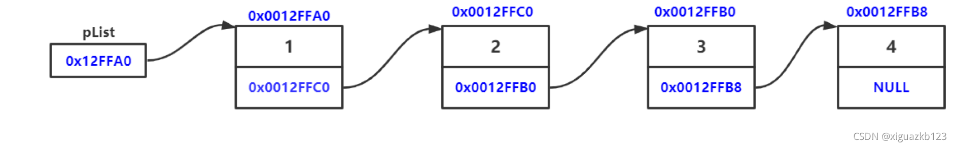 假设在32位系统上,结点中值域为int类型,则一个节点的大小为8个字节,则也可能有下述链表:?
