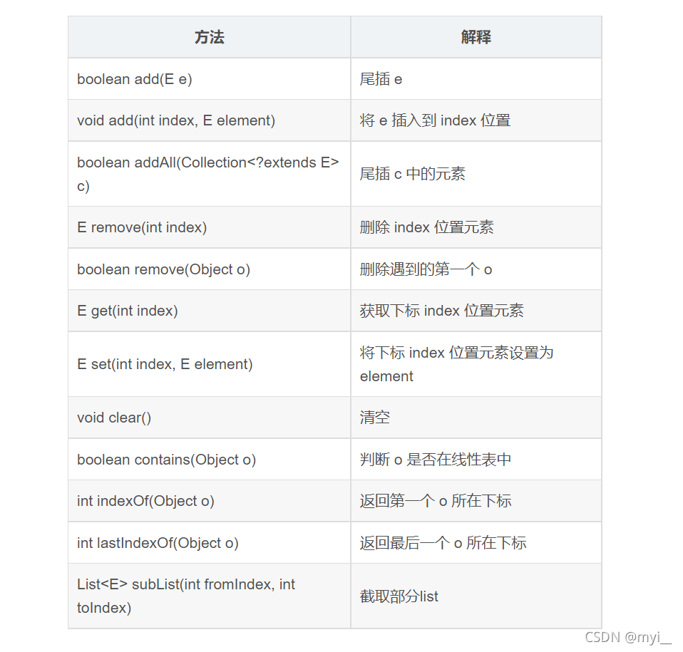 | 方法 | 解释 |