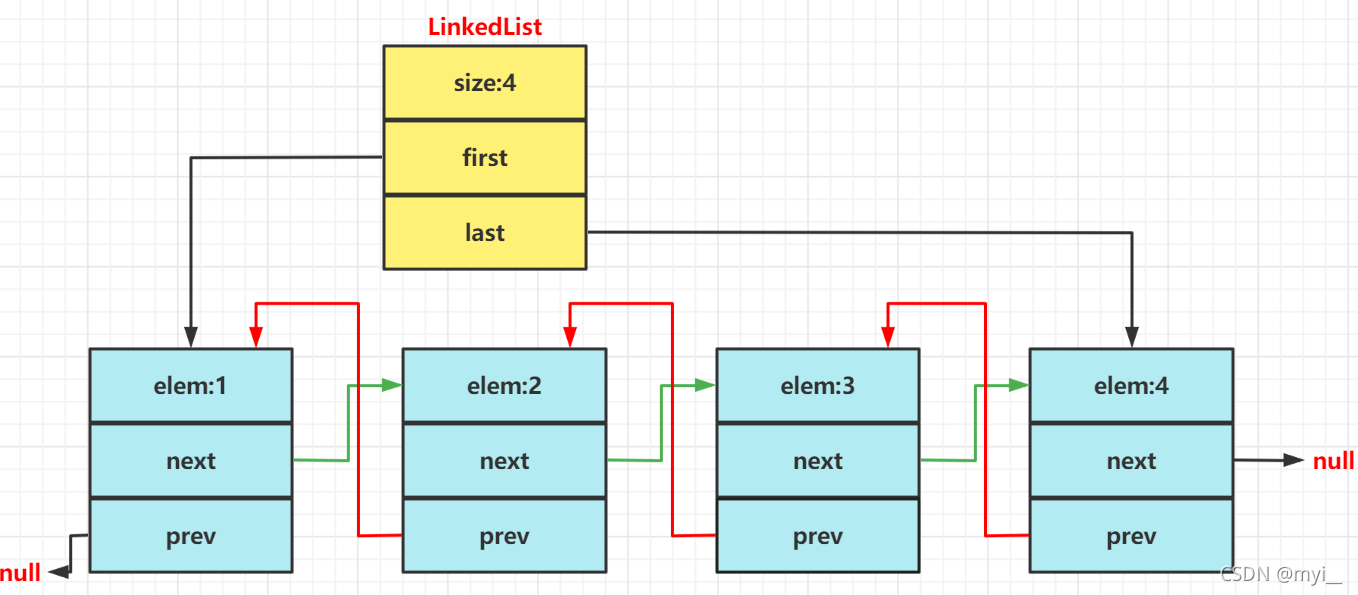 - LinkedList的底层使用了双向链表