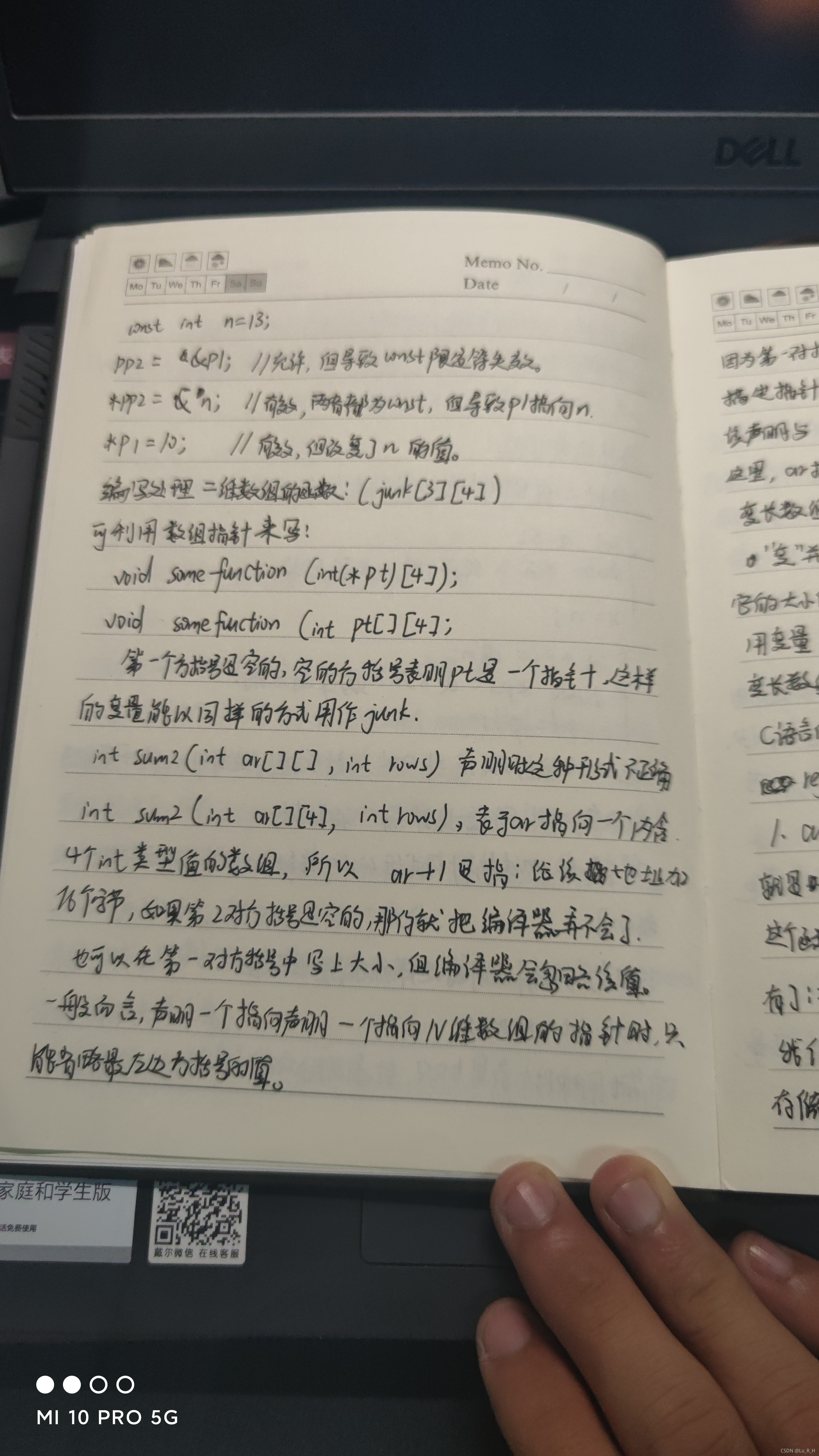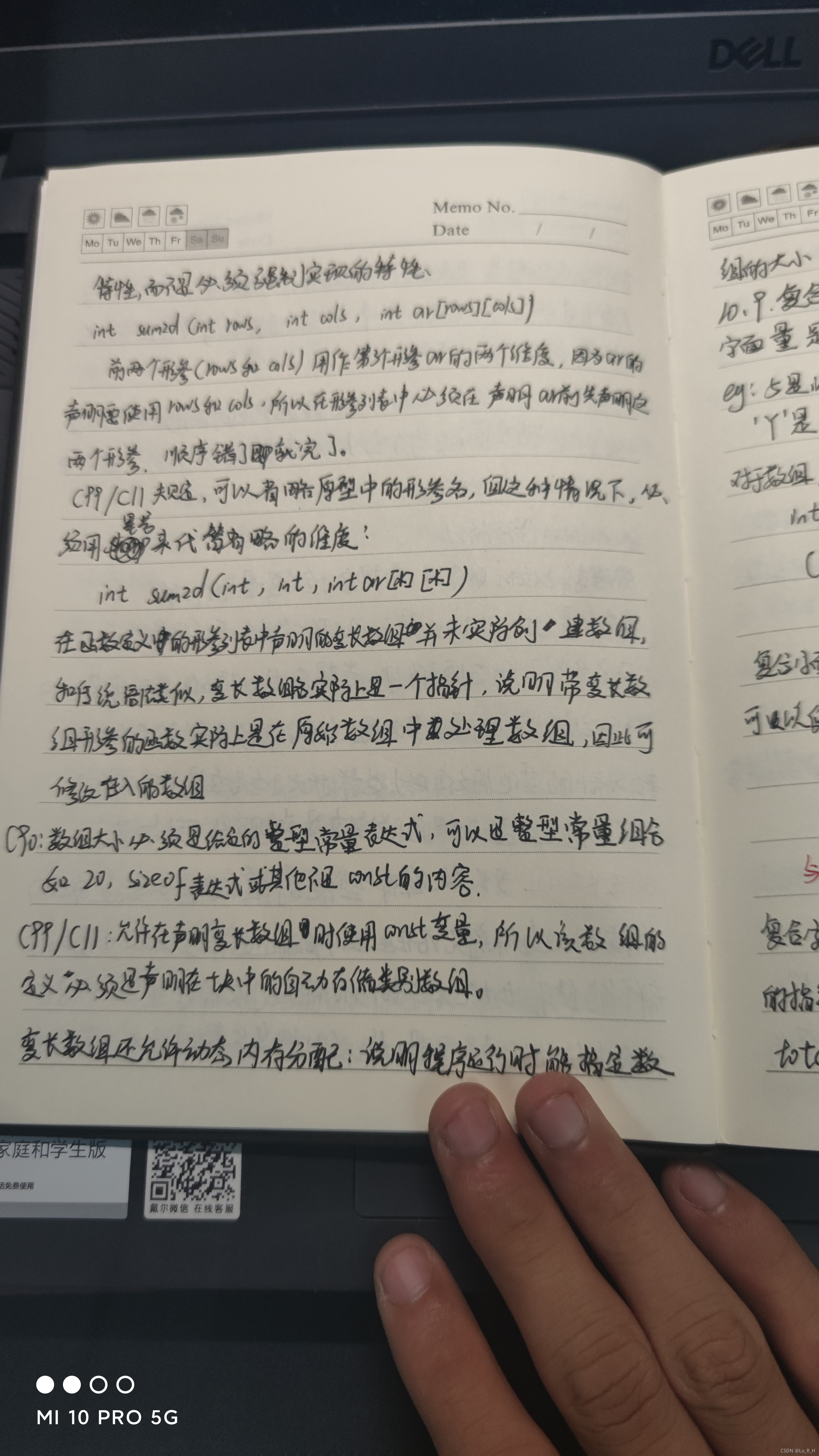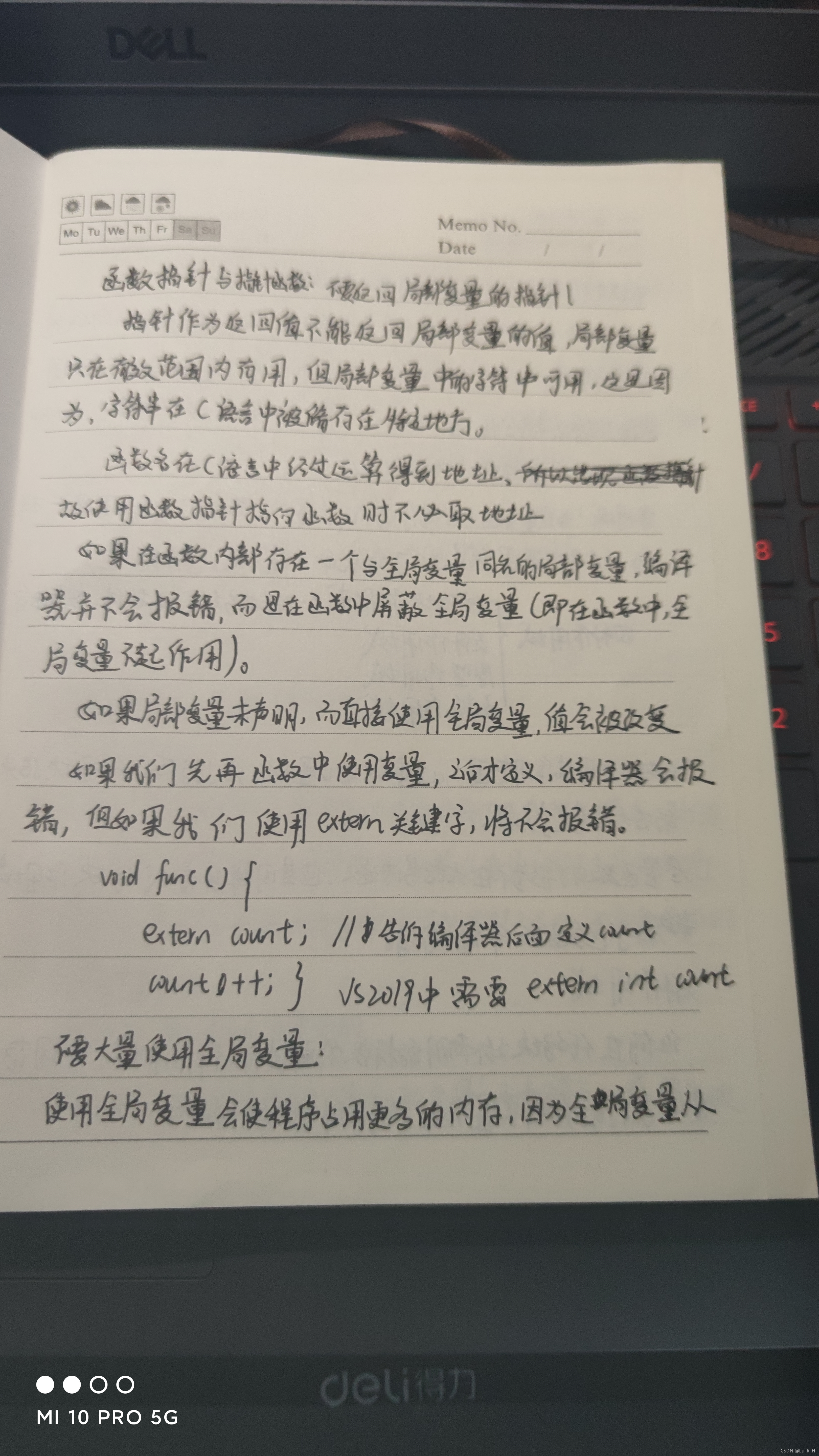由于指针难度较高,所以本周对指针进行了复习,笔记为纸质笔记,如下: