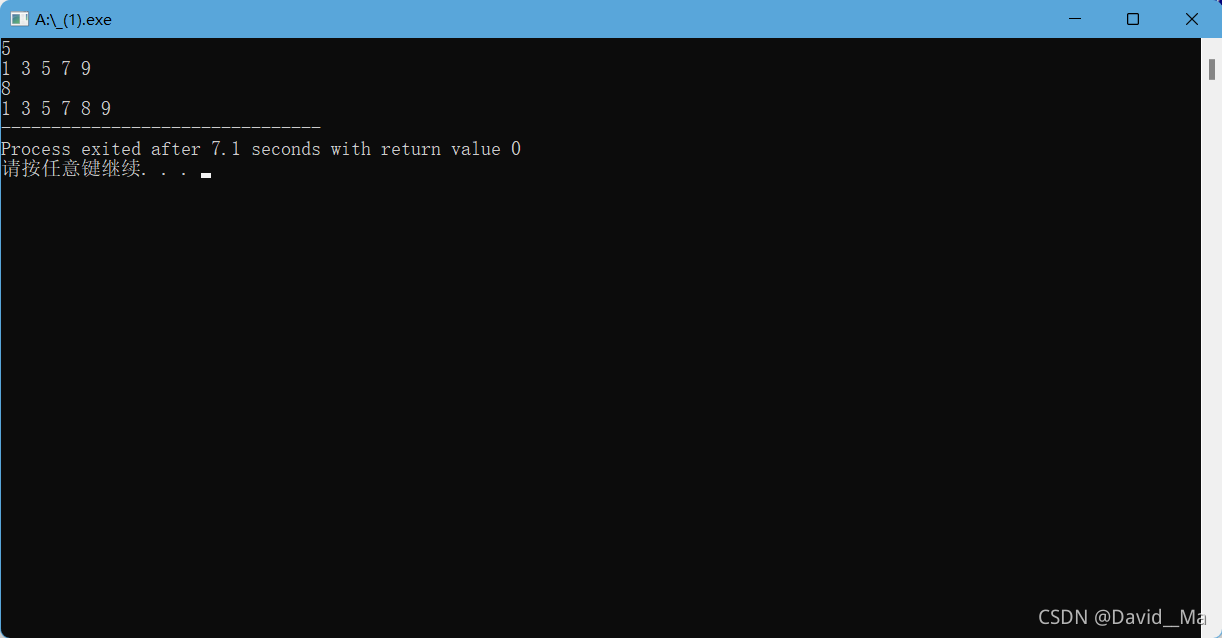输出数据的顺序与输入数据的顺序一致,数据与数据之间仅用一个空格隔开。
