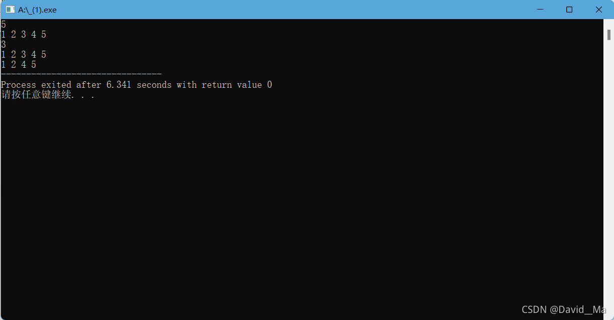 第二行为删除上述第三行输入的数据之后链表中剩下的内容。 【样例输入】