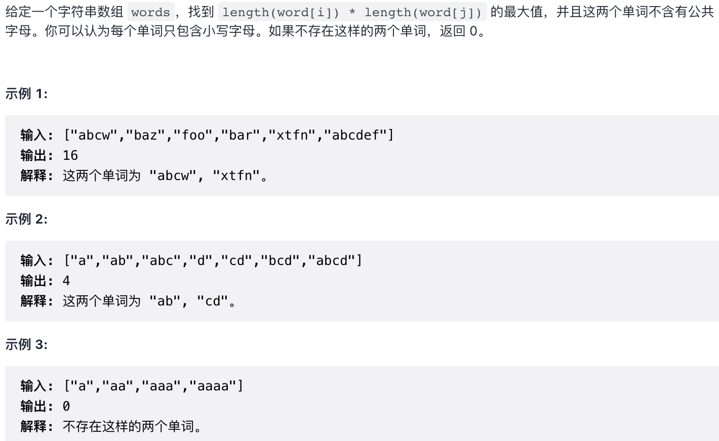 Leetcode - 318. 最大单词长度乘积 / python题解 / 判断两字符串是否存在相同元素 - 但是我拒绝 - 博客园