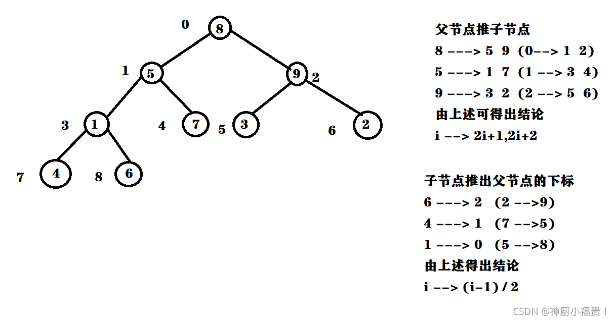 下面来看如何由子节点下标推出父节点和父节点下标推出子节点下标