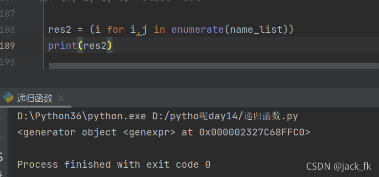 # 迭代器 res2 = (i for i,j in enumerate(name_list)) print(res2)