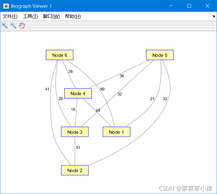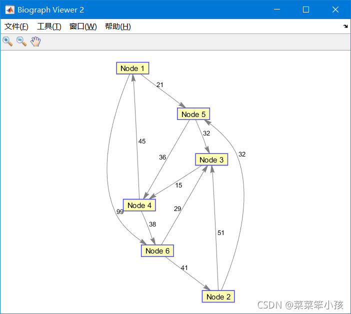 [min,path]=dijkstra(a,1,6) % dijkstra模型求解节点一到节点六最短路径
