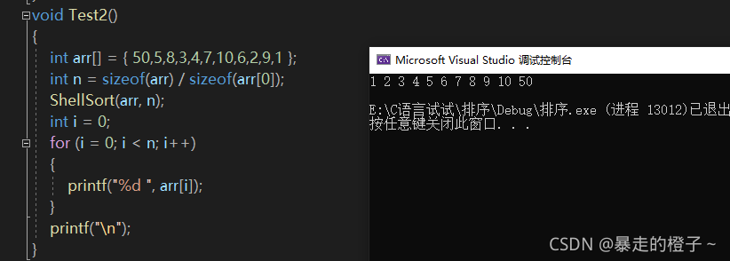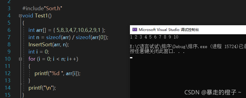 ? ? ? ? ? ?? ?? ?{ ?? ??? ?int end=i;//从第一个位置开始,往后一次作为末位置 ?? ??? ?int x = a[end + 1];//记录要插入的数据,此时,它前面的序列一定时有序的 ?? ??? ?while (end >= 0) //end>=0,保证了x和待排序的序列中每一个元素进行比较 ?? ??? ?{ ?? ??? ??? ?if (a[end] > x) //当end位置的数据大于待插入数据时,end的数据需要往后挪 ?? ??? ??? ?{ ?? ??? ??? ??? ?a[end + 1] = a[end]; //end位置的数据往后挪到end+1位置上 ?? ??? ??? ??? ?end--;//end--后,就可以保证接着比较前面的数据 ?? ??? ??? ?} ?? ??? ??? ?else //当a[end]<=x时,说明x需要找了要插入的地方 ?? ??? ??? ?{ ?? ??? ??? ??? ?break;//跳出循环 ?? ??? ??? ?} ?? ??? ?} ?? ??? ?a[end + 1] = x;//a[end+1]位置插入x,a[end]<x,所以要在end后插入x ?? ?} }