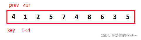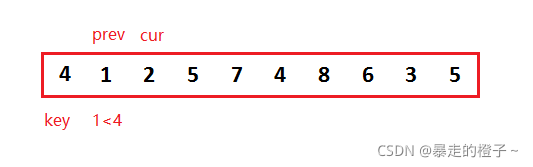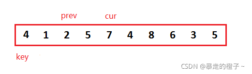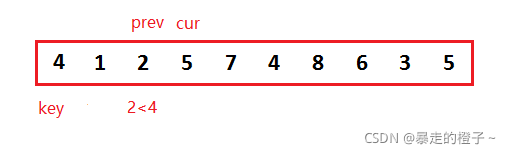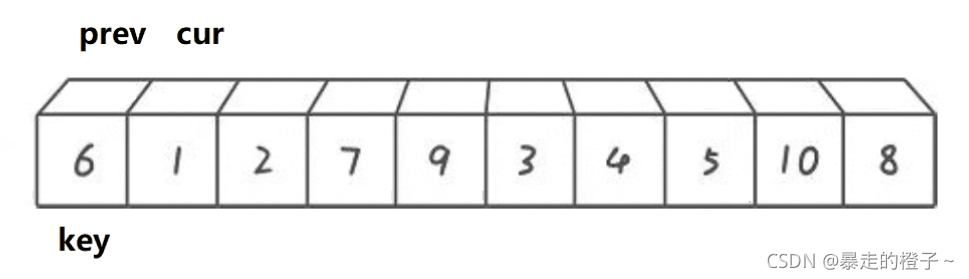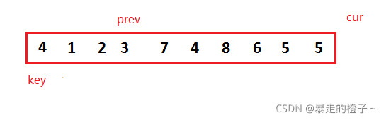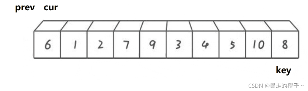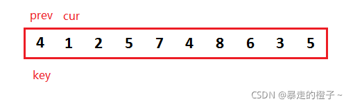 ? ? ? ?我们可以先把第一个数据当做end位置的数据,记录end+1的数据作为带插入数据。第一次就针对2个数据排序,当待插入数据插入后,这两个数据就有序了,以此类推,这样就保证每次插入的数据前面的序列有序。