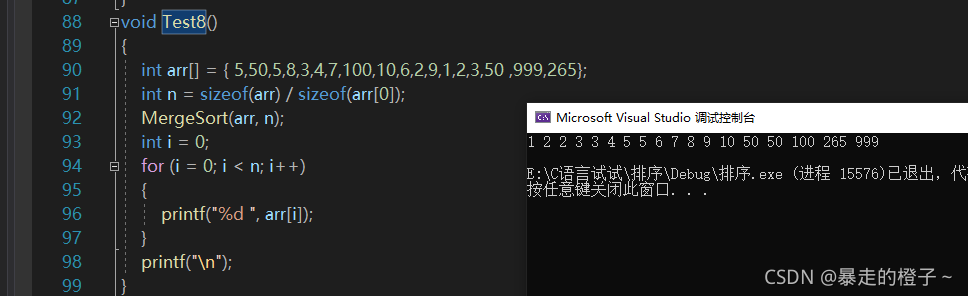 MergeSort(a7, 0, n - 1);