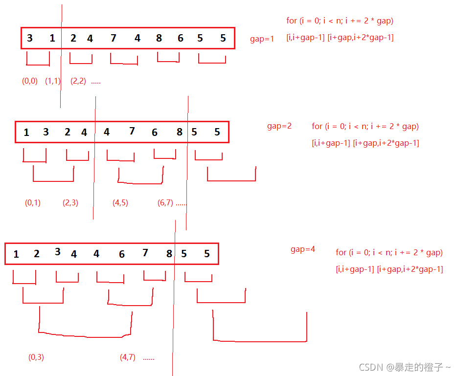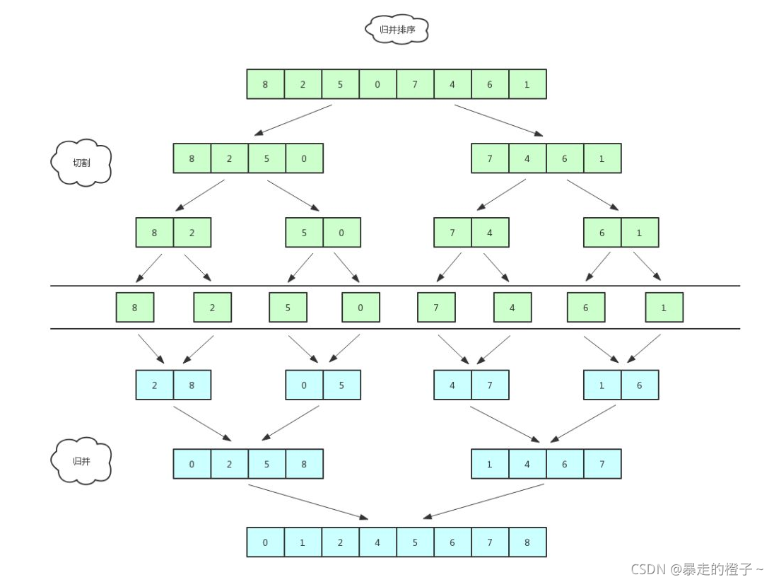 ??归并排序特点(非递归)