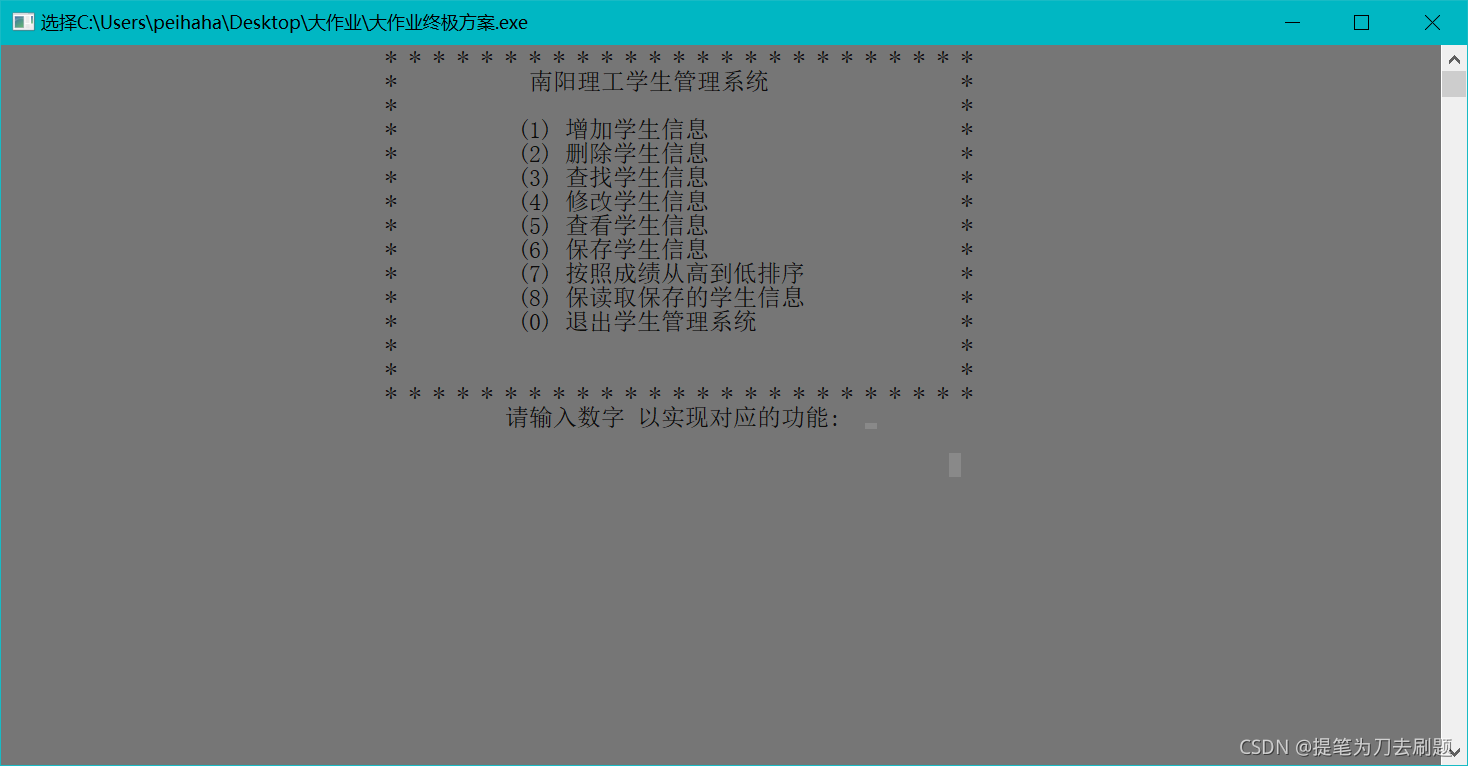 printf(" \t\t\t\t* 南阳理工学生管理系统 *\n");