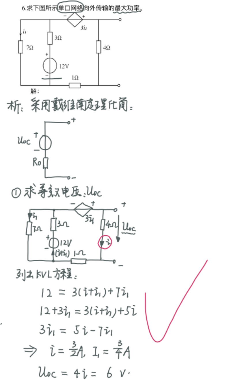 Pmax?=4R0?Uoc2??=4Isc2?R0?? 由此问题转化为了单口网络的化简问题。求得单口网络化简后电压与电阻即可获得最大功率