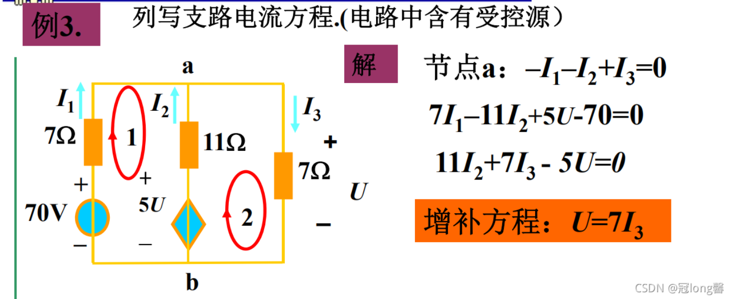① 将受控源当作独立源计算 ② 列出受控变量的增补方程