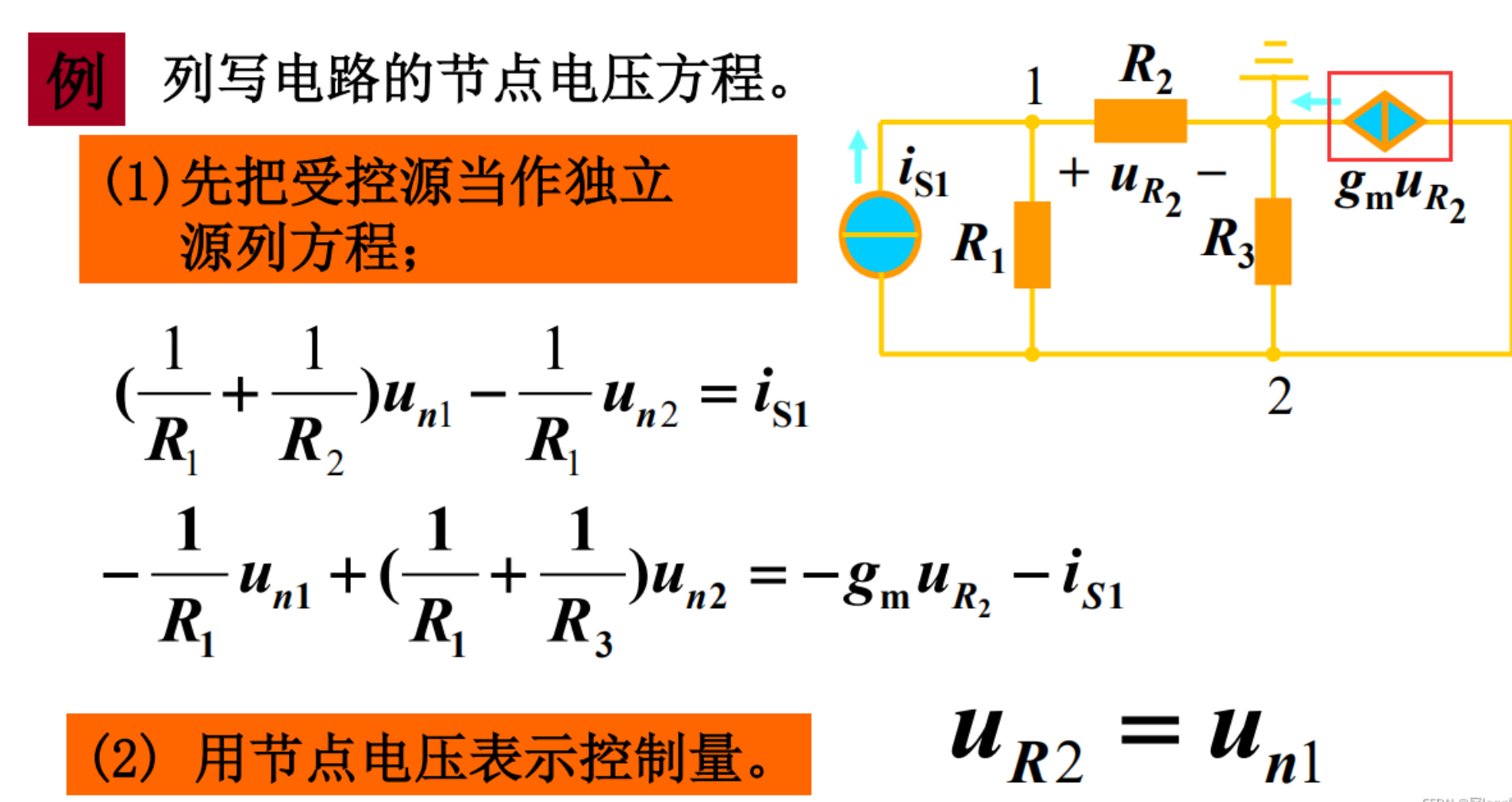 ① 将受控源当作独立源计算 ② 增加受控变量的增补方程 受控电流源 解决:当作独立电流源,并列出受控变量的增补方程  受控电压源 当作独立电流源,并列出电压的受控增补方程