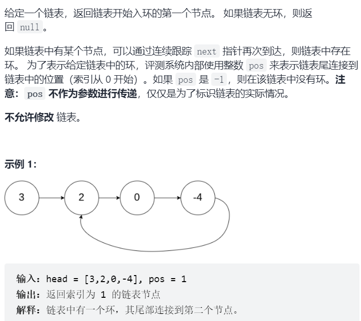 给定一个链表,返回链表开始入环的第一个节点。如果链表无环,则返回?null。