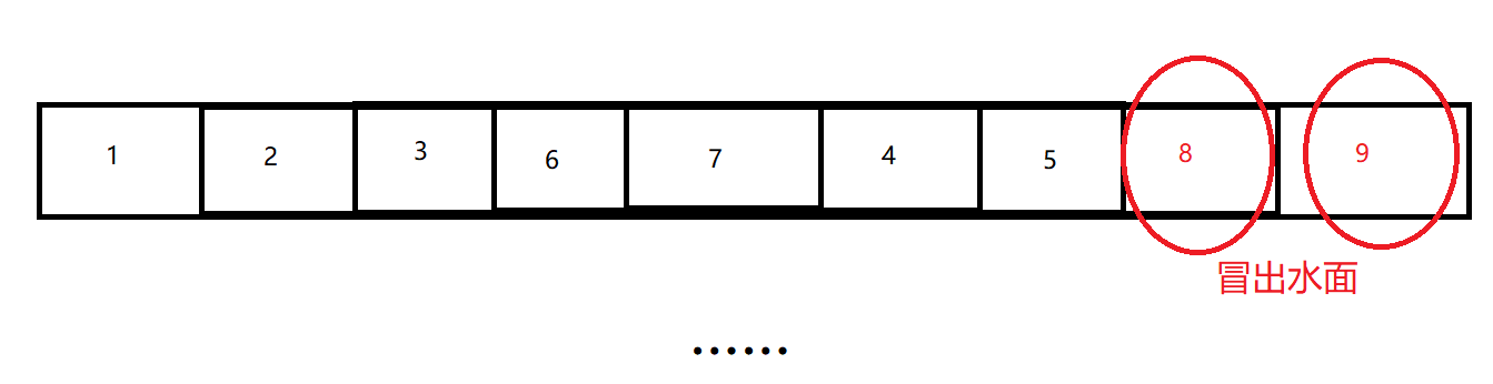 ?(画的可能有点抽象,大家请自行脑补一下。。。)我们每次进行两两比较,大的元素后置,也就是大的泡泡往上不断往上水面上浮,每次都会将最大的元素后置,也就是最大的泡泡到了最接近水面的地方,而到第一次的排序的最后,我们也会发现,最大的元素被放置到了最后。