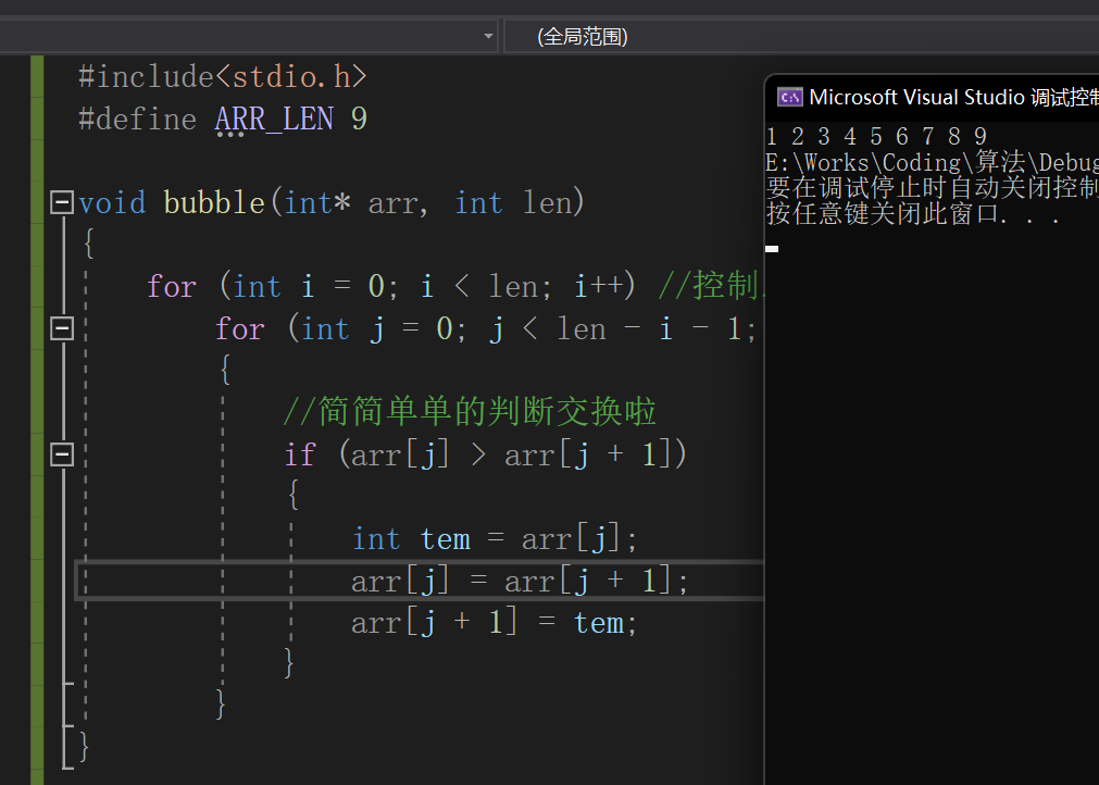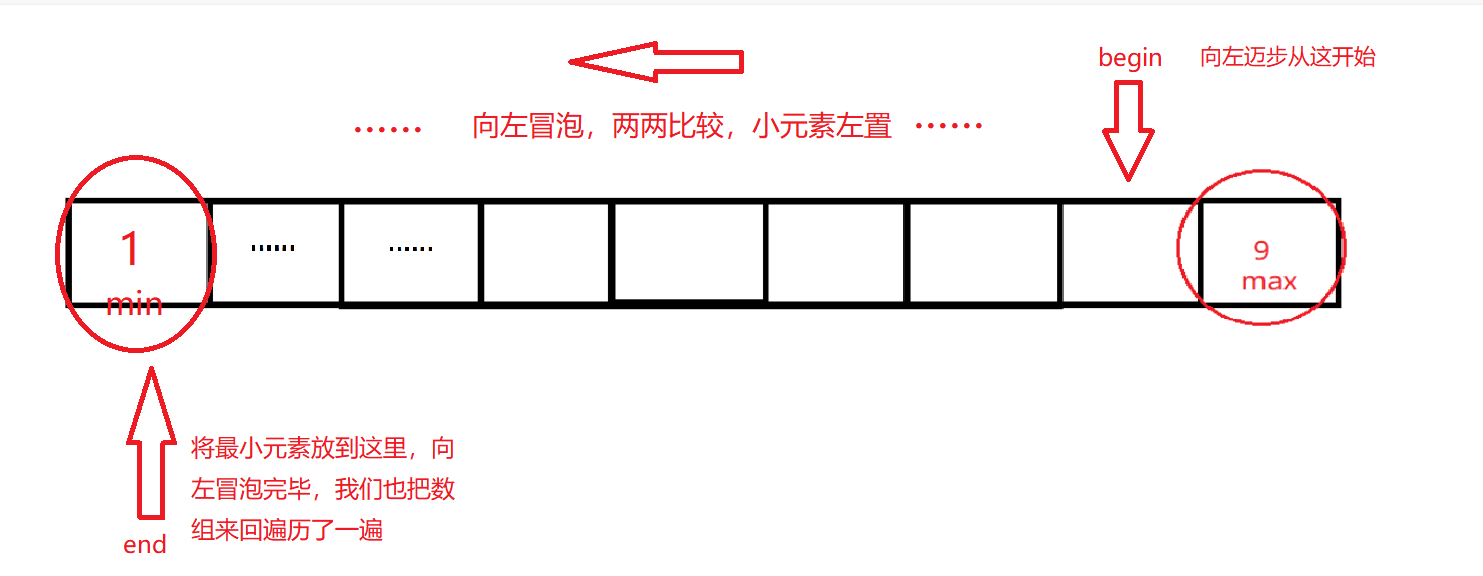//控制总的冒泡次数的循环,我们每进行一次就会把最大元素置到最后