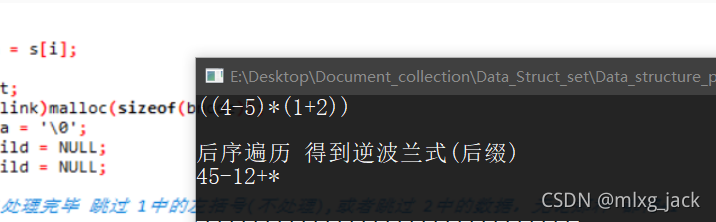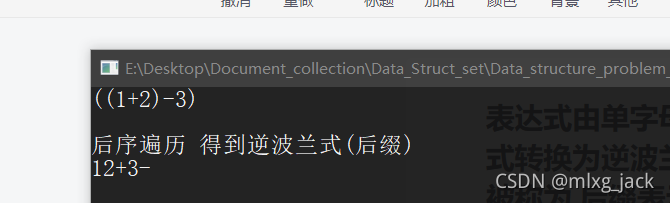 用二叉树遍历算法求该中缀表达式对应的后缀(逆波兰)表达式