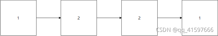 思路1:先遍历一边链表,将链表放入栈中,再次遍历链表,用链表中的元素与栈中弹出的元素作比较,如果链表中的元素与栈中弹出的元素相等则是回文结构。空间复杂度O(N)