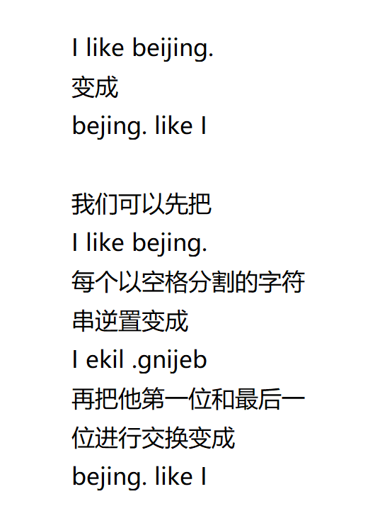 将一句话的单词进行倒置,标点不倒置。比如 I like beijing. 经过函数后变为:beijing. like I