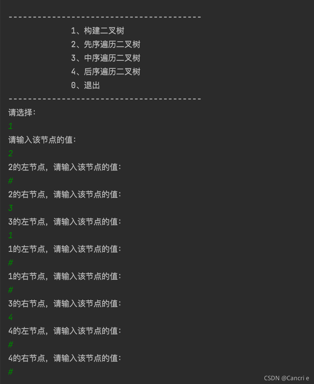 cout<<" 2、先序遍历二叉树 "<<endl;