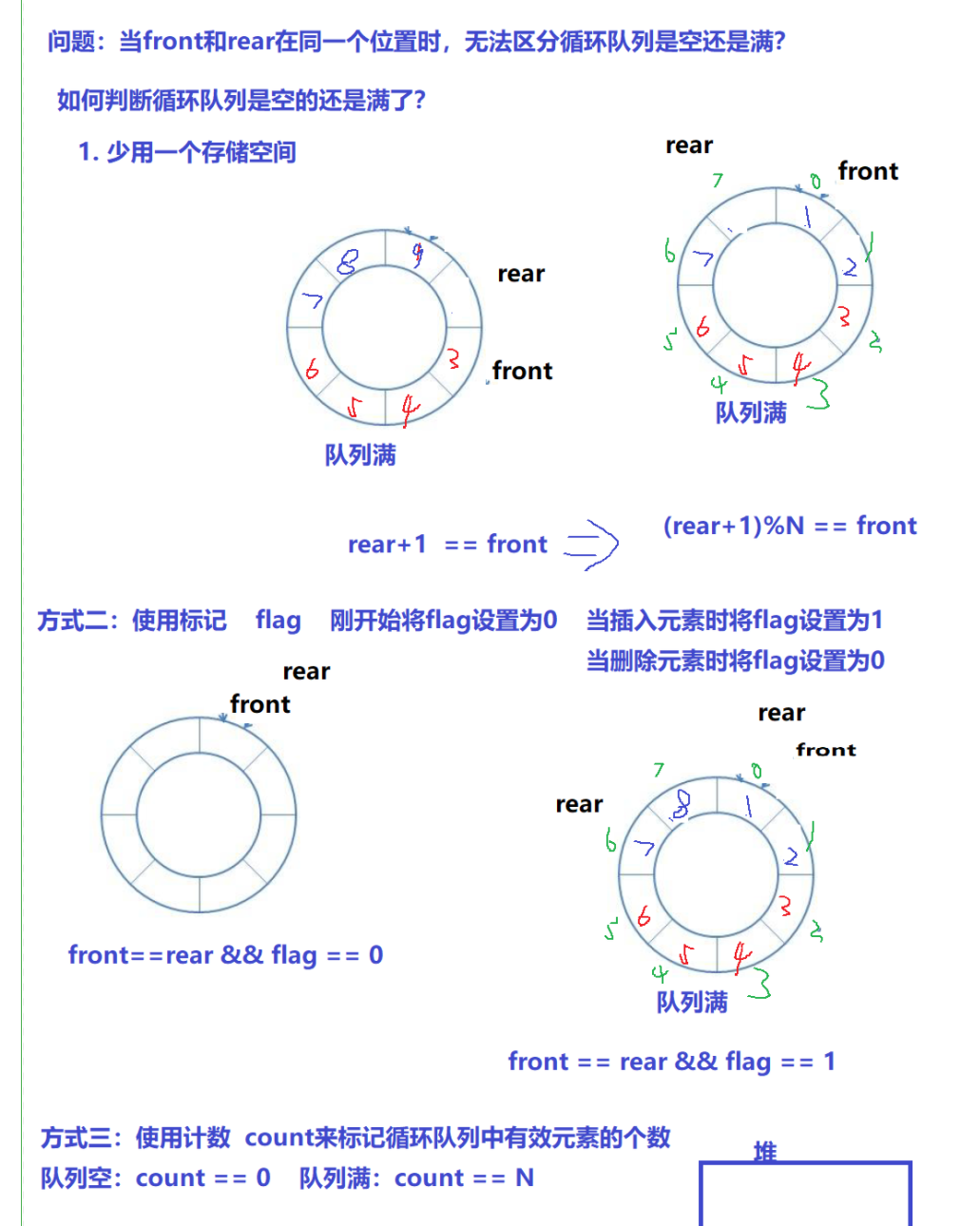 ?由上图可以判断队满和队空的条件是相同的