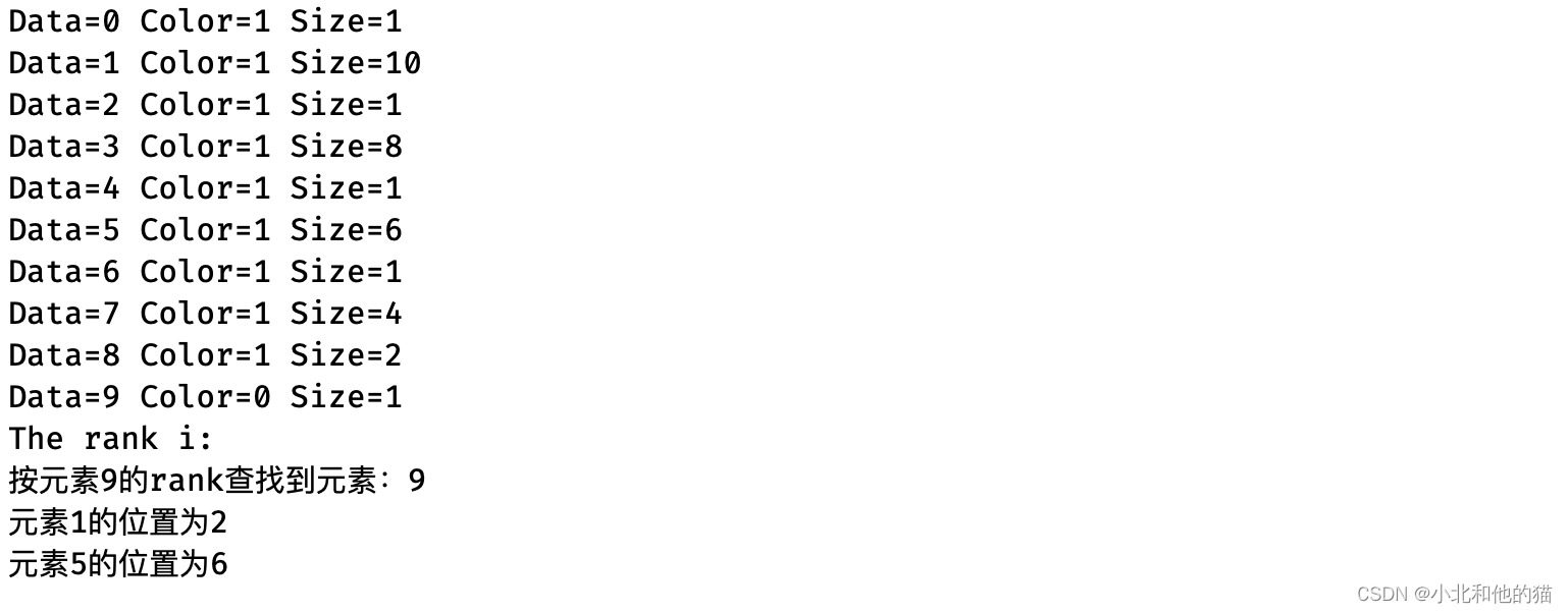 printf("按元素9的rank查找到元素:%d\n", OS_RANK(Tree,Res));