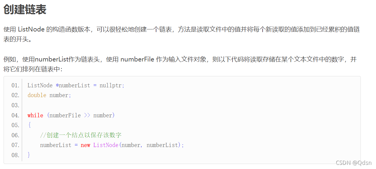 因为指向链表头的指针用于定位链表的头部,所以也可以认为它代表了链表头。同样的指针也可以用来定位整个链表,从头开始,后面跟着后续指针,所以也可以很自然地把它看作是代表了整个链表。  这个看起来很实用! 给到的一个实例程序,需要常看常新: