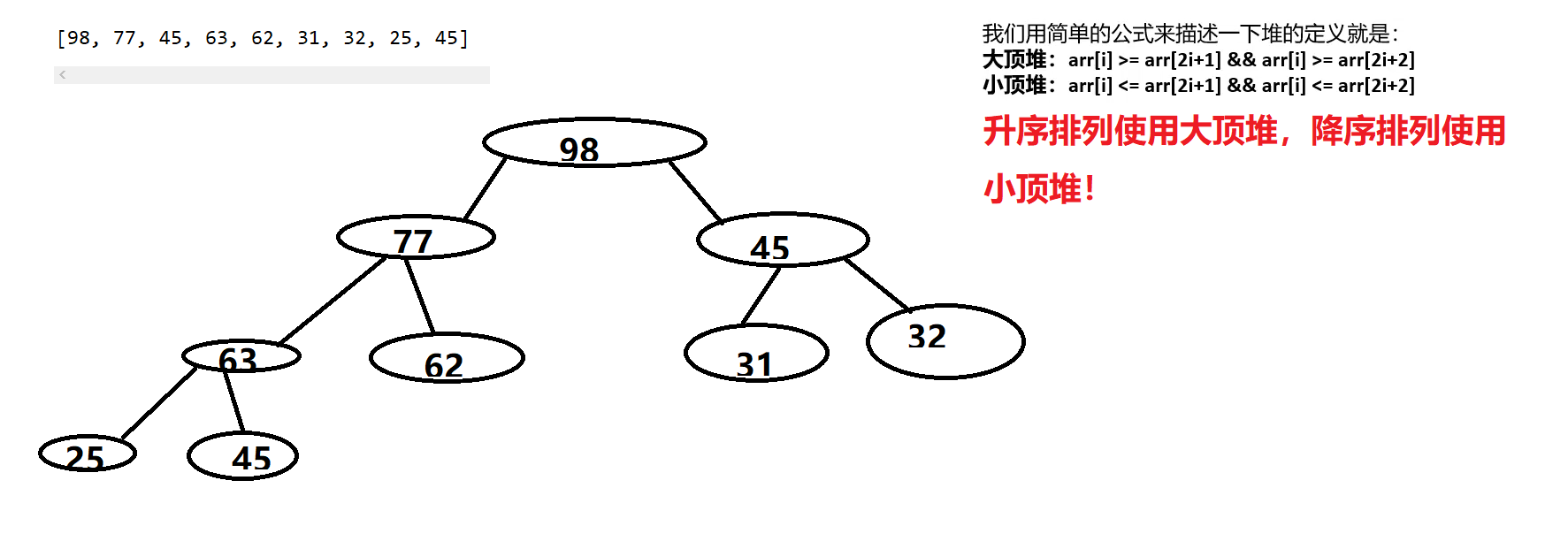二叉树结构示意图:  对于堆来说需要满足一下两个条件: - 是一个完全二叉树