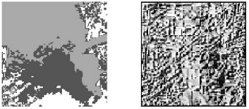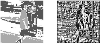 ????????本文LBP算法将像素聚类(3类)以后的图像进行特征提取。在此分别列举一张有烟图和无烟图的图像特征提取前后的效果对比。