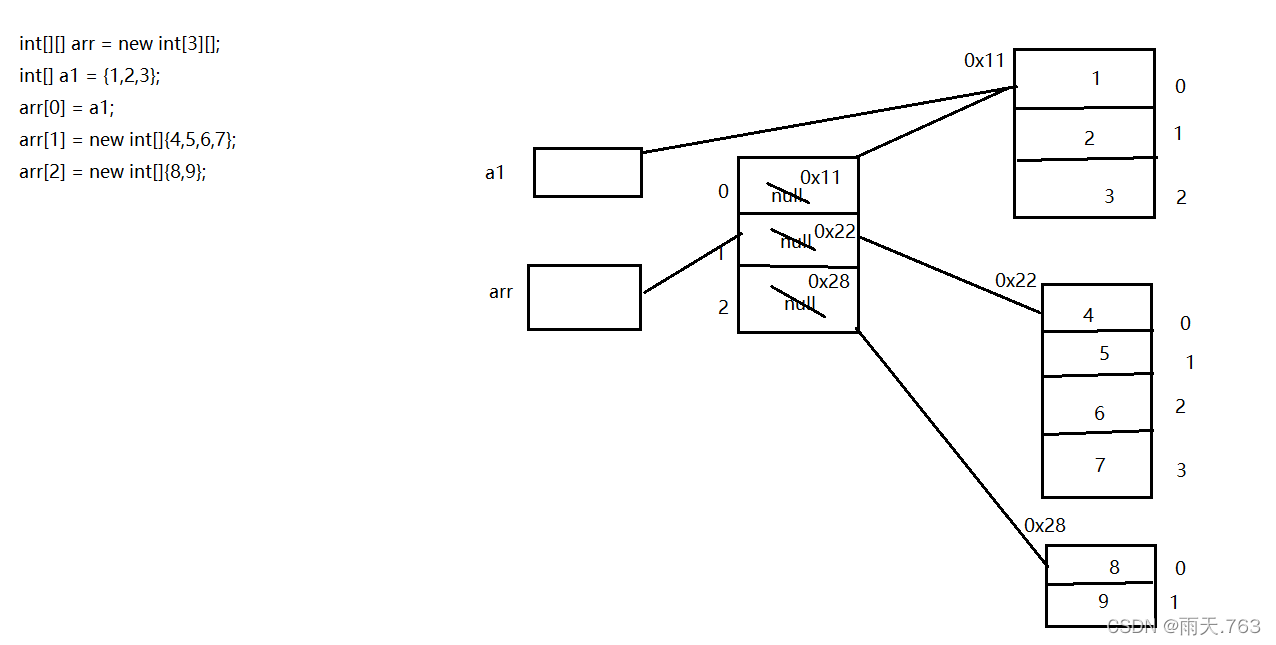 int[][] arr = new int[3][];//本质上定义了一个一维数组,长度为3