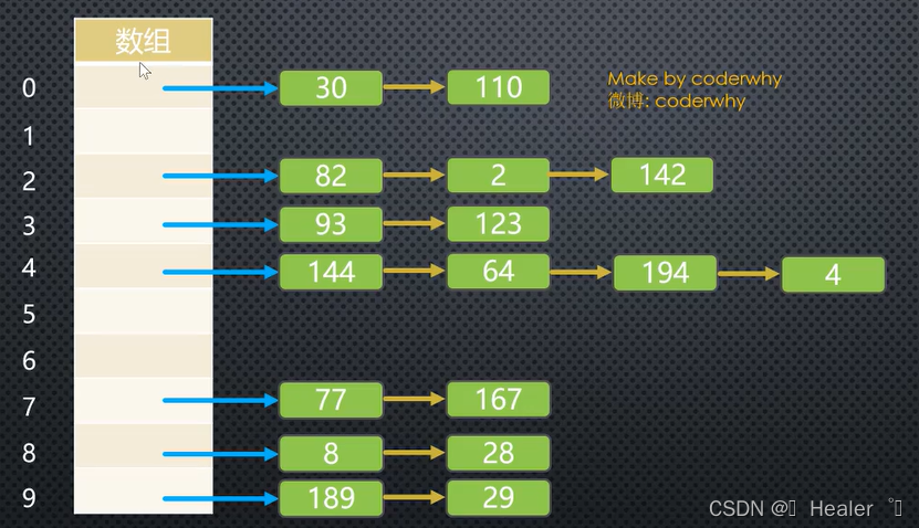 链地址法(拉链法):每个数组单元中存储的不再是单个数据,而是一个数组或者链表(两者均可,因为二者查找的效率差不多,根据业务x)