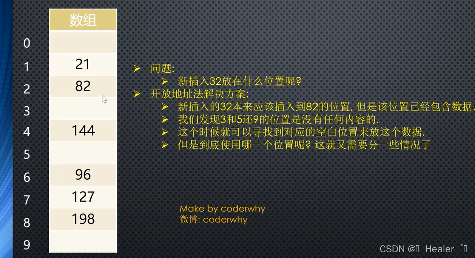 开放地址法:寻找空白的单元格来添加重复的数据。